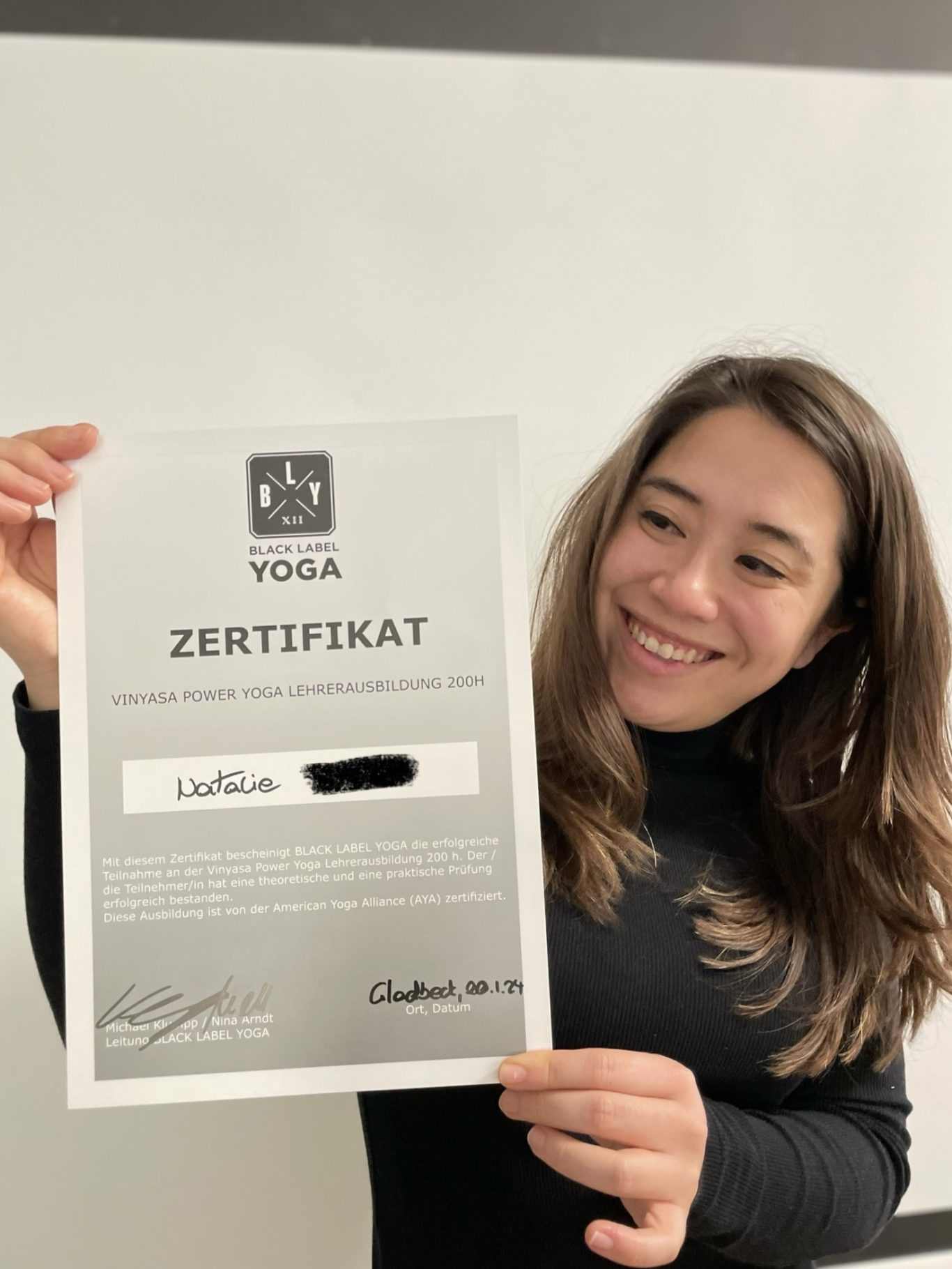 Obwohl das Leben mit Veränderungen über mich hinwegfegte, fand ich schließlich im Jahr 2023 den Mut und die Zeit, um die Vinyasa Power Yoga Ausbildung zu starten, die ich im Januar 2024 erfolgreich abschließen konnte. Noch während meiner Ausbildung bot mir meine damalige Yogalehrerin die Möglichkeit an, zwei ihrer Kurse zu übernehmen, und so wagte ich den Schritt ins Lehren.